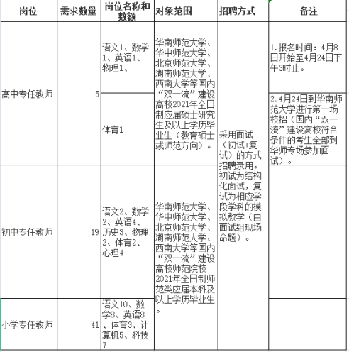 本次校園招聘專場(chǎng)面向國內(nèi)“雙一流”建設(shè)高校2021年全日制應(yīng)屆師范類本科及以上學(xué)歷畢業(yè)生招聘(詳見附件3:國內(nèi)“雙一流”建設(shè)高校參考名單),共招聘中小學(xué)教師65名(高中5名、初中19名、小學(xué)41名)。