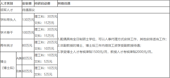 3.夫妻雙方均為博士的同時引進或先后引進的,安家費按夫妻雙方中最高標準的一方享受,另一方可享受標準安家費的一半。