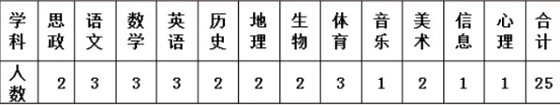1.初中部首次招聘中學合同制教師25名,各學科職數(shù)分配如下: