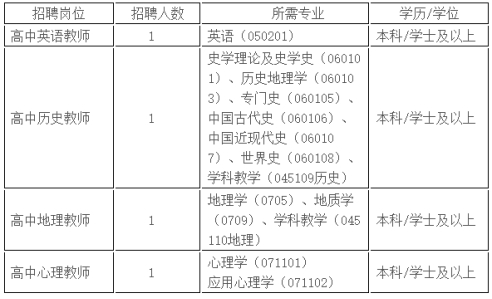 3.碩士研究生資格可適當(dāng)放寬,確定為聘用人員的,必須在正式報到后的2年內(nèi)取得教師資格證書。不能按時取得教師資格證書,解除聘用合同。