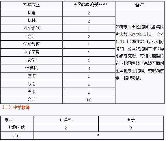 7.報(bào)考職業(yè)學(xué)校教師除汽車維修、計(jì)算機(jī)專業(yè)外其它專業(yè)需具有中專(或同等水平)教師資格證(或已取得教育學(xué)、心理學(xué)合格成績(jī)且通過(guò)普通話二級(jí)乙等以上測(cè)試,具備申報(bào)教師資格證條件)。報(bào)考中學(xué)教師除計(jì)算機(jī)專業(yè)外需具有中學(xué)教師資格證(或已取得教育學(xué)、心理學(xué)合格成績(jī)且通過(guò)普通話二級(jí)乙等以上測(cè)試,具備申報(bào)教師資格證條件)。