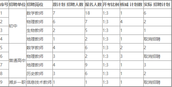 根據(jù)《2021年湘鄉(xiāng)市教育局下屬事業(yè)單位公開(kāi)招聘工作人員公告》的要求及報(bào)名情況,因部分招聘崗位報(bào)名成功的人數(shù)未達(dá)到1:3的筆試開(kāi)考比例,經(jīng)湘鄉(xiāng)市教育局初審,報(bào)湘鄉(xiāng)市人社局同意,核減部分招聘崗位招聘計(jì)劃。