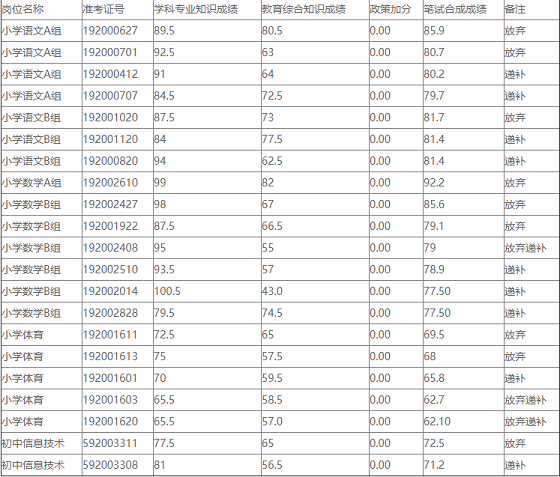 因資格復審環(huán)節(jié)部分崗位考生自動放棄,根據(jù)《2021年度安徽省廣德市中小學新任教師公開招聘公告》規(guī)定進行遞補,現(xiàn)將放棄和遞補人員名單予以公告。