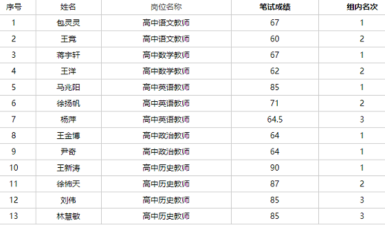 根據(jù)《響水縣部分高中2021年赴周口師范學院招聘教師公告》精神,經(jīng)筆試,現(xiàn)將響水縣部分高中2021年赴周口師范學院招聘教師擬進入面試人員成績及名單予以公示。