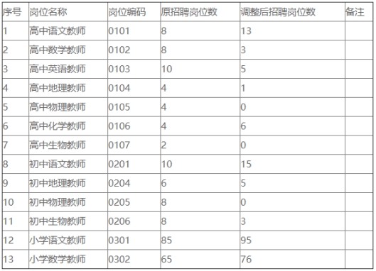 根據(jù)《布拖縣教育體育和科學(xué)技術(shù)局2021年面向社會公開考試招聘合同制中小學(xué)教師公告》(以下簡稱《公告》)中調(diào)整崗位的相關(guān)規(guī)定,根據(jù)報名情況,經(jīng)招聘領(lǐng)導(dǎo)小組研究,對本次招聘的部分崗位名額作調(diào)整,F(xiàn)將調(diào)整情況公告如下: