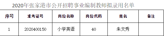 附件:2020年張家港市公開招聘事業(yè)編制教師擬錄用名單