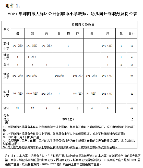 附件1:2021年邵陽(yáng)市大祥區(qū)公開招聘中小學(xué)、幼兒園教師計(jì)劃職數(shù)及崗位表