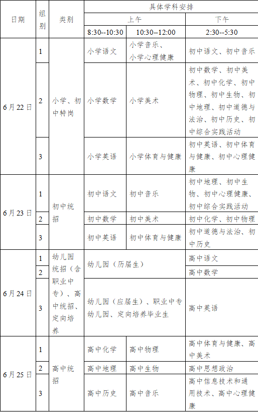 資格復審的時間:6月22日--6月25日。具體學科資格復審指導時間安排如下: