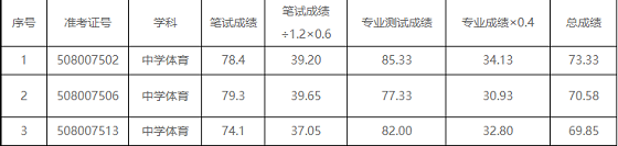 根據(jù)省招聘方案計(jì)分規(guī)定,總成績(jī)=筆試合成成績(jī)÷1.2×0.6+專業(yè)測(cè)試成績(jī)×0.4,F(xiàn)將2021年高新區(qū)教師招聘進(jìn)入專業(yè)測(cè)試人員的筆試成績(jī)、專業(yè)測(cè)試成績(jī)、總成績(jī)和擬體檢、考察名單公示如下: