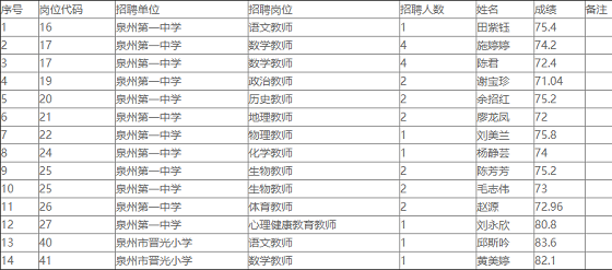 根據(jù)《2021年泉州市直公立學(xué)校專項(xiàng)公開(kāi)招聘新任教師公告(二)》,現(xiàn)將2021年泉州市直公立學(xué)校專項(xiàng)公開(kāi)招聘新任教師入圍人員成績(jī)公示如下,公示時(shí)間:2021年6月1日--2021年6月7日。若有疑問(wèn),請(qǐng)咨詢0595-22785162。