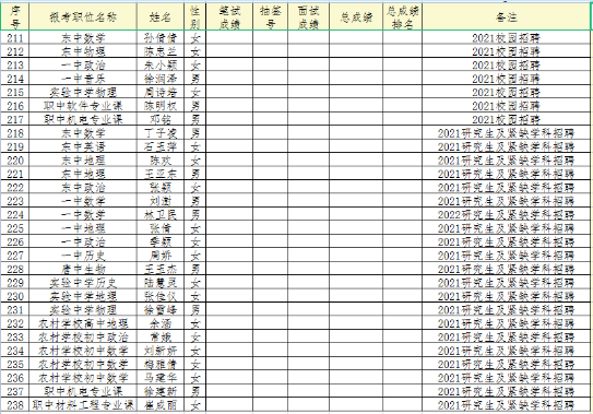 見附件。(為工作需要,請名單上人員于6月15日前加入“2021東臺教師招聘”QQ工作群,群號689136974。本群實名制,進群申請驗證信息為“姓名+身份證號碼”,進群后統(tǒng)一群名片格式“學科+姓名”,如“小學語文張三”,非名單上人員不得加入。)