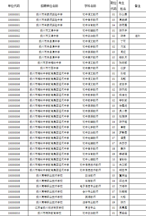 2021年揚州市教育局所屬事業(yè)單位公開招聘教師體檢人員名單