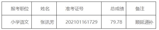 華南師范大學(xué)附屬新塘學(xué)校2021年公開招聘事業(yè)編制教師擬聘用人員公示后,小學(xué)語(yǔ)文職位1人因個(gè)人原因放棄,按照招聘公告和有關(guān)規(guī)定,以職位總成績(jī)順延遞補(bǔ)人員1名(名單見下表)。