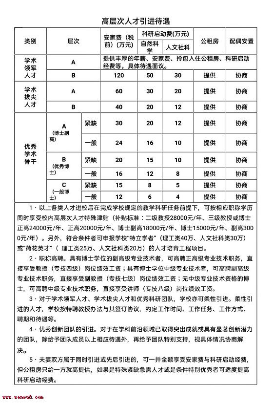 經(jīng)公示無異議者,辦理聘用手續(xù),簽訂聘用合同,按規(guī)定約定試用期,有工作經(jīng)驗(yàn)的高層次人才依據(jù)上級(jí)政策可視情況免試用期,試用期包括在聘用合同期限內(nèi)。試用期滿,經(jīng)考核不合格的,解除聘用合同。高層次人才待遇參照下表執(zhí)行。