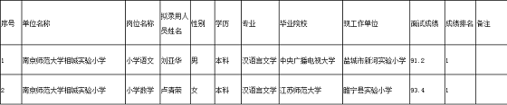 根據(jù)《2021年南京師范大學(xué)相城實(shí)驗(yàn)小學(xué)引進(jìn)骨干教師公告》規(guī)定,經(jīng)公開報(bào)名、考核、考察(政審)、體檢等程序,初步確定擬錄取以下2名同志為相城區(qū)事業(yè)編制教師,現(xiàn)予以公示,公示時(shí)間為7個(gè)工作日(6月11日—6月22日)。