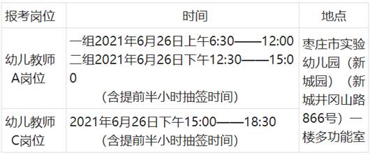 2.幼兒教師A崗位分上午和下午兩組,由同一個(gè)考官組進(jìn)行測試;幼兒教師B、C、D崗位不再分組。幼兒教師A崗位考生須于2021年6月25日中午12:00-14:00攜帶上述證件,到棗莊市實(shí)驗(yàn)幼兒園(新城園)現(xiàn)場參加分組,通過到場的先后順序,確定本人初試的時(shí)間段。
