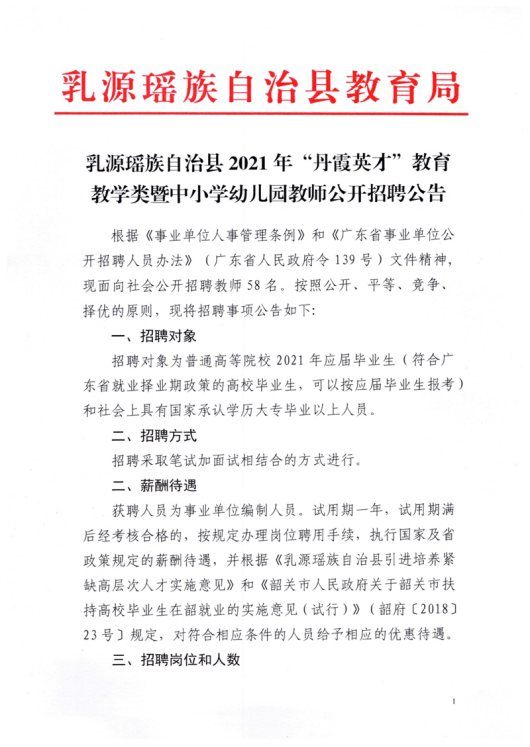 附件1:乳源瑤族自治縣2021年“丹霞英才”教育教學(xué)類暨中小學(xué)、幼兒園教師公開招聘崗位表.xlsx