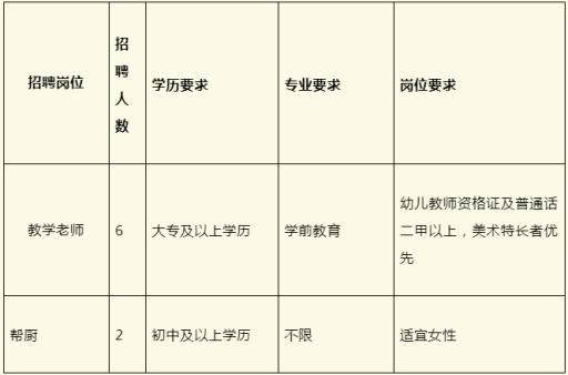 具有中華人民共和國國籍,享有公民的政治權(quán)利,遵紀(jì)守法、品行端正、身體健康,熱愛幼教工作;具備招聘崗位要求的資格條件。