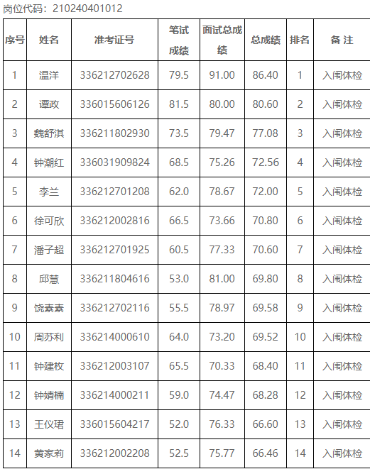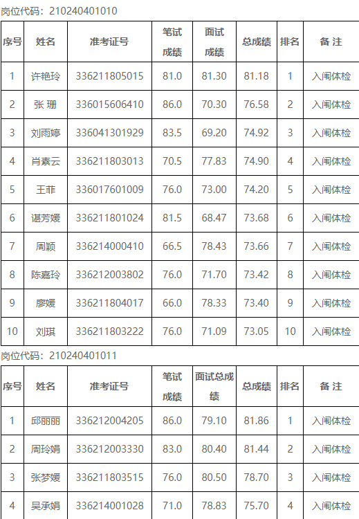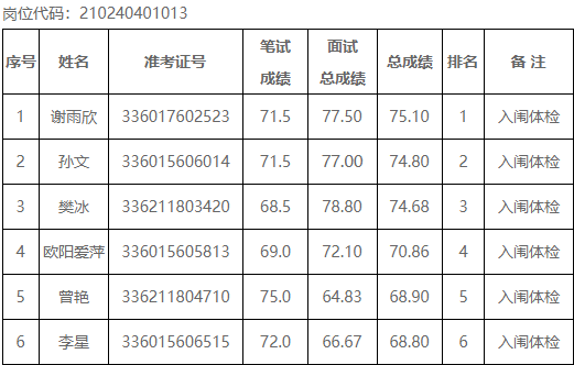 按照江西省2021年中小學(xué)教師招聘及贛州市保育院有關(guān)公告的安排,我院于2021年6月26日組織了面試,根據(jù)筆試和面試成績分別占40%和60%計(jì)算考試總成績,經(jīng)排名,從高分到低分按招聘人數(shù)等額確定入闈體檢、考察人員公告如下: