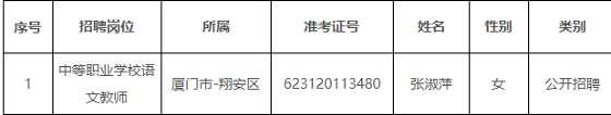 附:2020年翔安區(qū)公開招聘中小學(xué)職業(yè)學(xué)校教師擬錄用人員