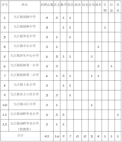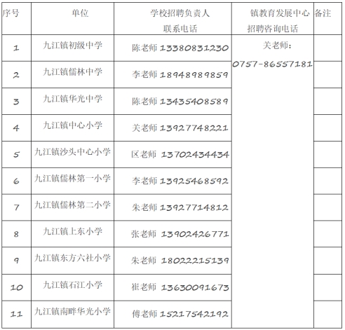 備注:以上招聘對象不含九江鎮(zhèn)各學(xué)校在職鎮(zhèn)聘教師。