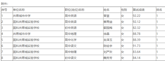 根據(jù)崗位計(jì)劃數(shù)1:1比例,按面試成績(jī)從高分到低分等額確定擬入闈體檢人員,具體名單見(jiàn)附件。