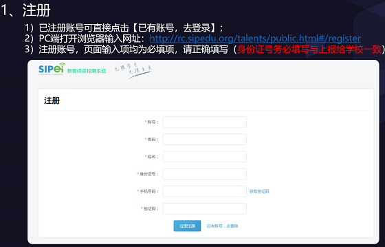 各單位已將校內(nèi)考核合格的應聘人員錄入到系統(tǒng)中,應聘人員可登錄園區(qū)教育局網(wǎng)絡招聘系統(tǒng)(網(wǎng)址:http://rc.sipedu.org/talents/public.html#/register)根據(jù)操作步驟(見附件)完成賬號注冊,后期可查看招聘進度。1名考生限報1所學校1個專業(yè)。
