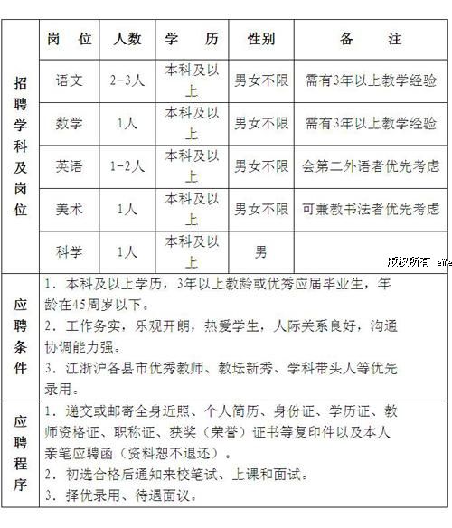 3.江浙滬各縣市優(yōu)秀教師、教壇新秀、學(xué)科帶頭人等優(yōu)先錄用。