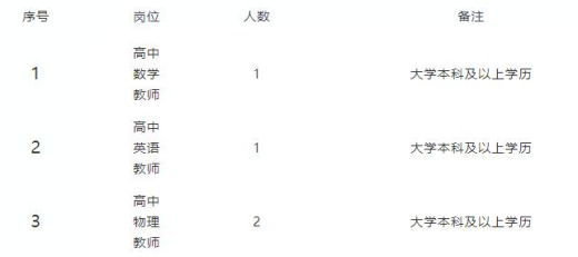 因工作需要,現(xiàn)面向社會公開招聘高中數(shù)學(xué)教師、英語教師和物理教師共4名。