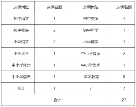 本次共選調(diào)城區(qū)學(xué)校教師23名,具體崗位和名額如下: