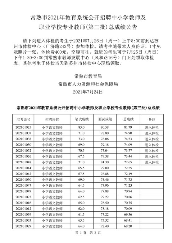 2021年蘇州常熟市教育系統(tǒng)公開招聘中小學(xué)教師及職業(yè)學(xué)校專業(yè)教師(第三批)總成績公告