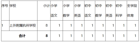 因上外附屬杭州學校事業(yè)發(fā)展需要,參照《事業(yè)單位人事管理條例》(國務院令第652號)、《事業(yè)單位公開招聘人員暫行規(guī)定》(人事部令第6號)和《關于加強新時期高層次人才引育的若干意見》(富委人領辦〔2020〕17號)等文件精神,上外附屬杭州學校面向全國公開招聘初中、小學優(yōu)秀教育人才,現(xiàn)將有關事項公告如下: