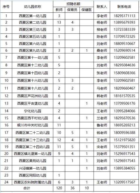 為不斷推進(jìn)西夏區(qū)學(xué)前教育優(yōu)質(zhì)發(fā)展,加強(qiáng)幼兒園教師隊(duì)伍建設(shè),經(jīng)研究決定,現(xiàn)面向社會(huì)公開招聘非在編幼兒園教師、保育員、保健醫(yī),共計(jì)166名(其中幼兒教師120名、保育員36名、保健醫(yī)10名),F(xiàn)將有關(guān)事項(xiàng)公告如下:
