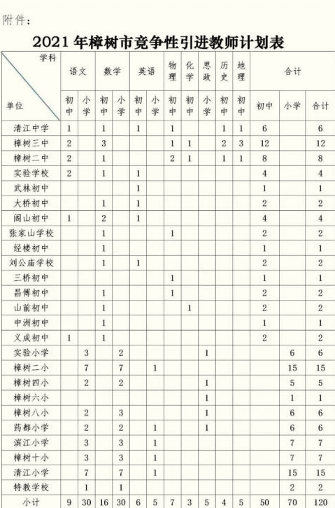 附件:2021年樟樹市競爭性引進教師計劃表