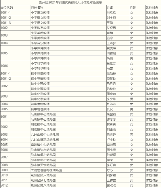 附件:荊州區(qū)2021年引進(jìn)優(yōu)秀教師人才體檢對象名單