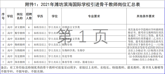 附件:1.2021年濰坊濱海國際學(xué)校引進骨干教師崗位匯總表