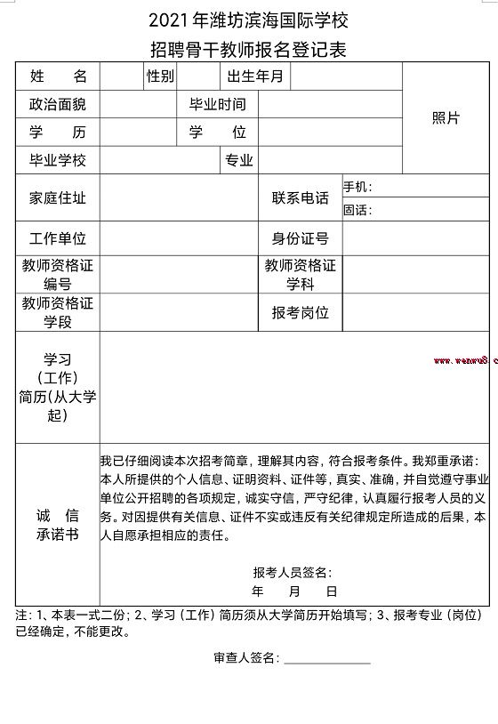 2.2021年濰坊濱海國際學(xué)校引進骨干教師報名登記表