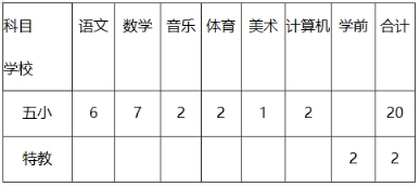 面向全縣各鄉(xiāng)鎮(zhèn)農(nóng)村中小學(xué)校通過(guò)考試選拔的方式配備緊缺學(xué)科教師,保障第五實(shí)驗(yàn)小學(xué)及特殊教育學(xué)校教育教學(xué)工作正常開展。