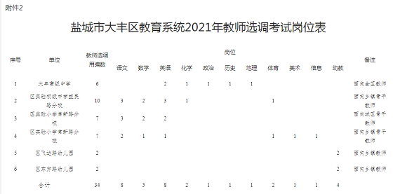 2.鹽城市大豐區(qū)教育系統(tǒng)2021年教師選調(diào)考試崗位表