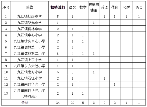備注:以上招聘對象不含九江鎮(zhèn)各學校在職和已簽協(xié)議的鎮(zhèn)聘教師。