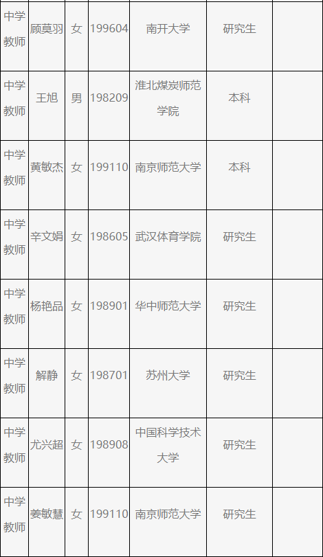 根據(jù)《2021年華中師范大學(xué)蘇州太湖實(shí)驗(yàn)中學(xué)公開(kāi)招聘教師公告》,《2021年華中師范大學(xué)蘇州實(shí)驗(yàn)中學(xué)補(bǔ)充招聘教師公告》,經(jīng)過(guò)筆試、面試、體檢和政審合格,擬錄用以下16名同志,現(xiàn)公示如下:
