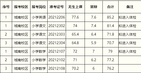 附件:蚌埠市蚌山區(qū)2021年校園招聘教師面試成績(jī)