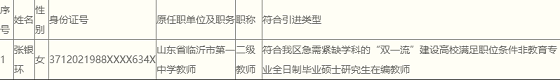 根據(jù)《漳州市龍文區(qū)人民政府關(guān)于印發(fā)<龍文區(qū)教育人才引進(jìn)管理辦法(暫行)>的通知》(漳龍政〔2020〕81號)文件精神,經(jīng)報名、資格審查、面試、體檢、政審合格,經(jīng)研究,擬聘用張銀環(huán)同志為龍文區(qū)中學(xué)教師,現(xiàn)予公示。公示期間,如有問題,請及時向龍文區(qū)教育局人事職改股反映。公示時間為自發(fā)布日起5個工作日。監(jiān)督電話:0596-2638810。