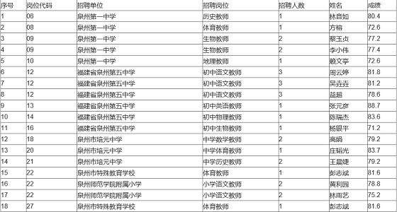 根據(jù)《2021年泉州市直公立學(xué)校專項公開招聘新任教師公告(三)》,現(xiàn)將2021年泉州市直公立學(xué)校專項公開招聘新任教師入圍人員成績公示如下,公示時間:2021年9月3日--2021年9月9日。若有疑問,請咨詢0595-22781630。