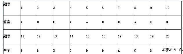 一、單項選擇題(本題共20小題,每小題1分,共20分)在每小題的四個選項中選出一個正確答案,請將正確選項前的字母填在題后的括號內,選對得1分。選錯、多選、或不選得0分。