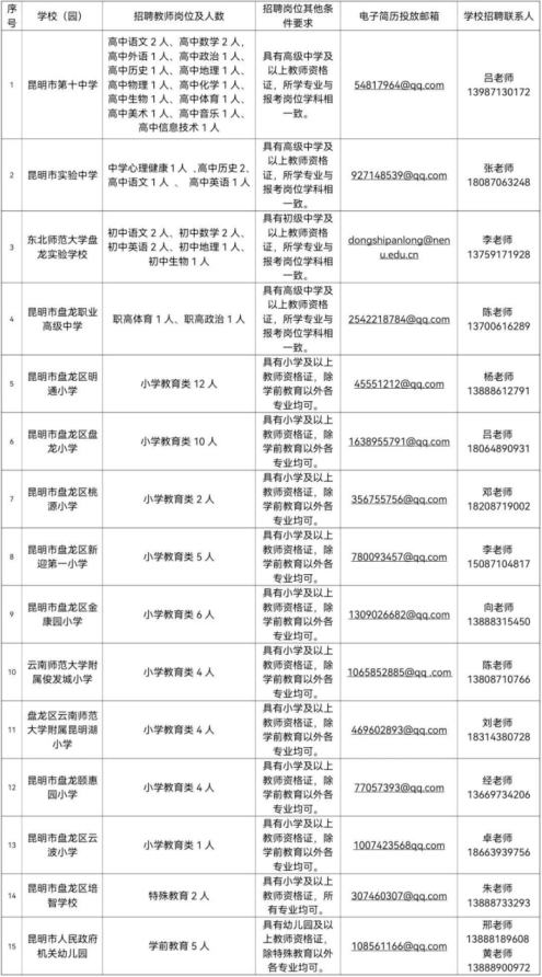 集中招聘時(shí)間:2021年9月17日—18日(9:00--11:30、13:00--16:30)在昆明市第十中學(xué)(求實(shí)校區(qū))體育館,從盤龍江邊側(cè)門進(jìn)入。