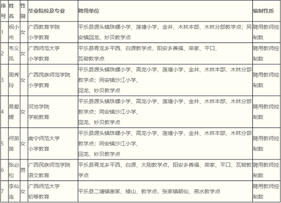 附件:平樂縣教育局所屬學(xué)校2021年度教師招聘擬聘人員名單公示(第二批)