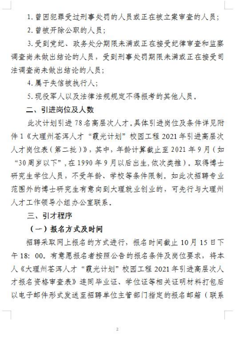 1. 大理州蒼洱人才“霞光計劃”校園工程2021年引進(jìn)高層次人才崗位表(第二批).xlsx