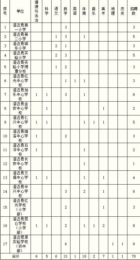 為充實我縣義務教育階段教師隊伍,現(xiàn)面向社會公開招聘70名教師,特公告如下: