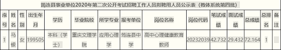 附:筠連縣事業(yè)單位2020年第二次公開(kāi)考試招聘工作人員擬聘用人員公示表(馬銀)